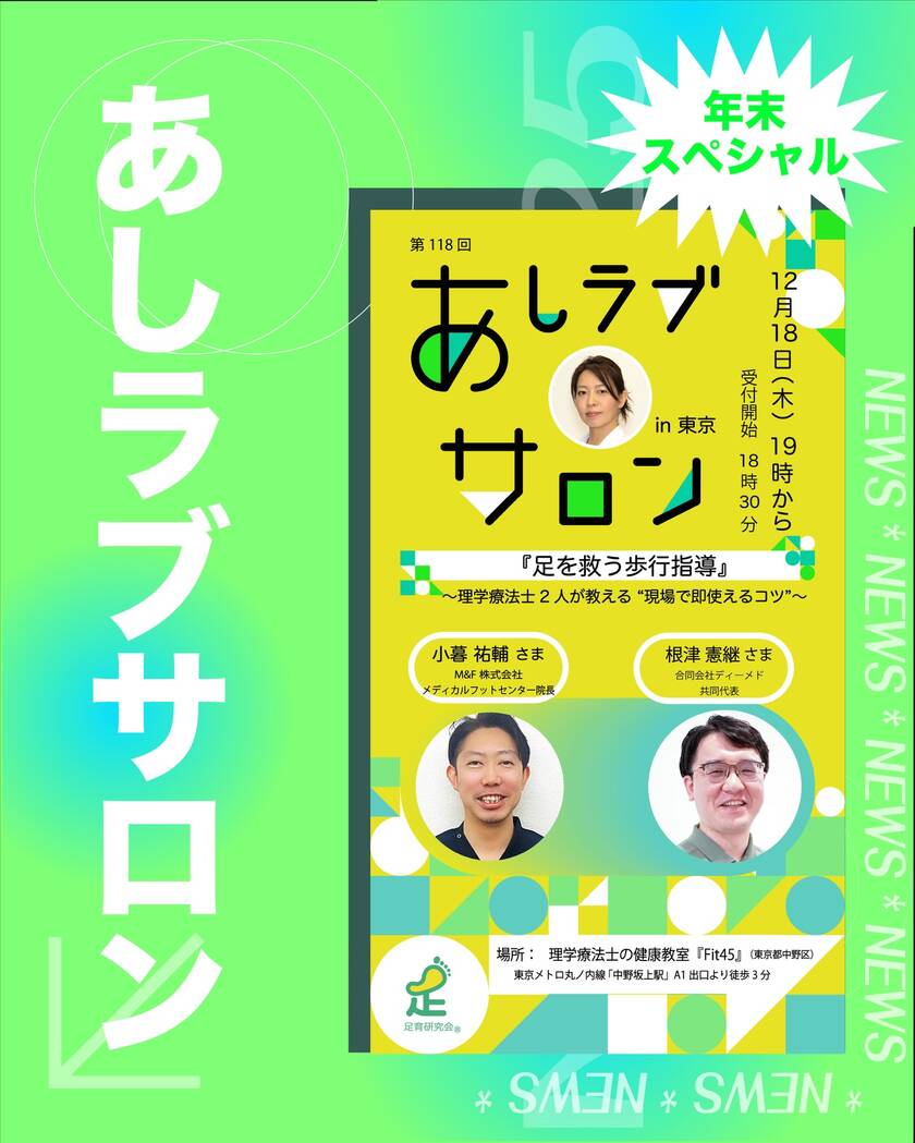 足育研究会「あしラブサロン」が開催するセミナー「第118回あしラブサロン」において、弊社共同代表であり理学療法士の根津憲継が司会・進行役として登壇することをお知らせいたします。